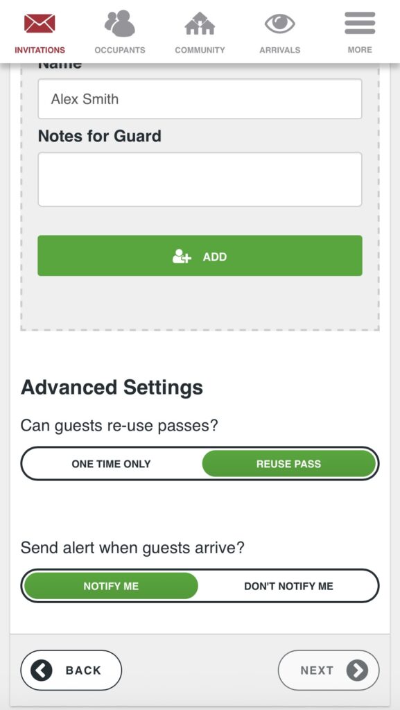 Visit Notifications:Â Residents can choose to be notified when guest arrives.