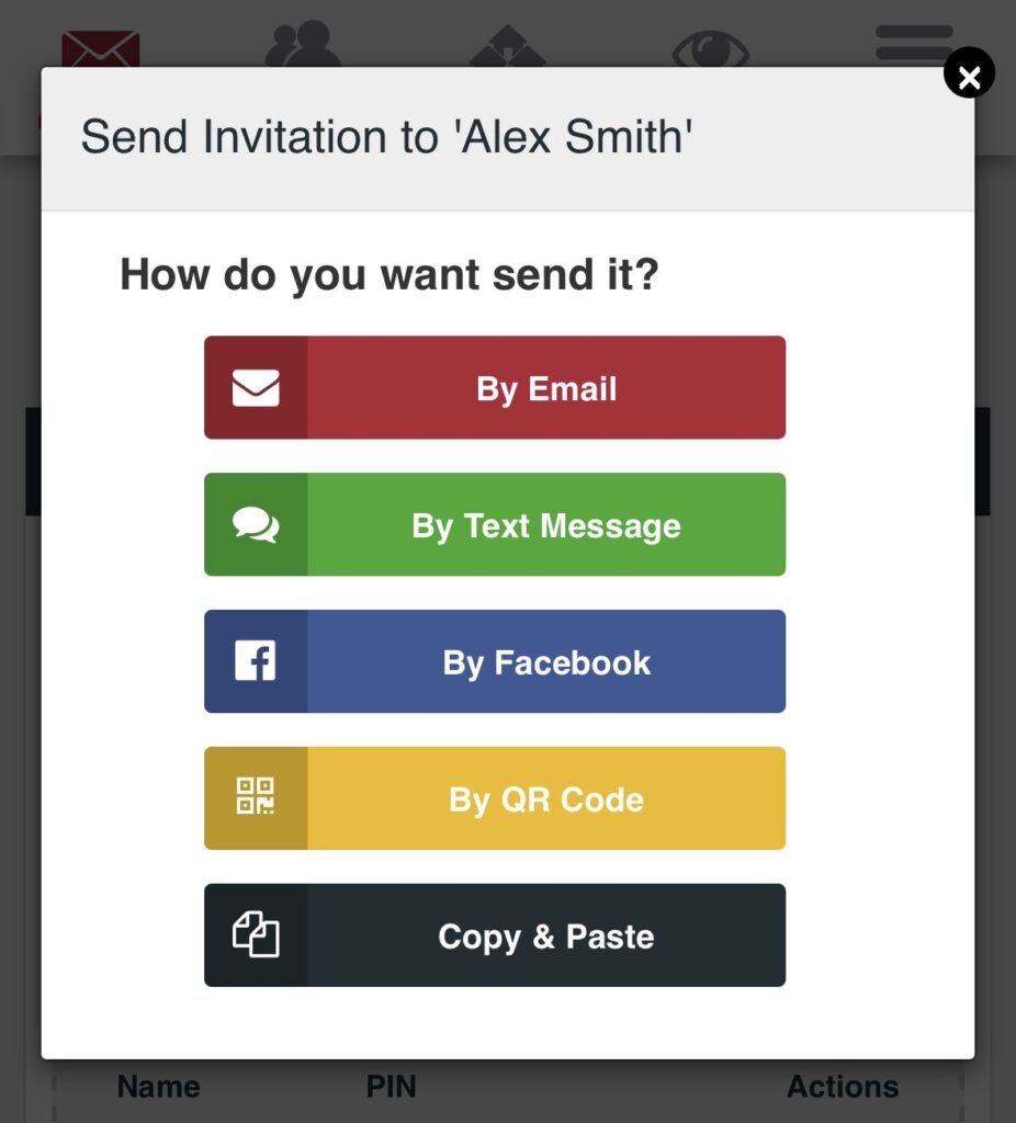 PIN codes can be shared even without a device. For invitations created online, the code can be included directly and conveniently shared using any of the options offered by Tap2Open, making guest access simple and hassle-free.
