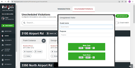 Guards can search for invitations by resident name, address, or guest name. The system even supports phonetic searches, so it finds the right person even if the name is spelled wrong.